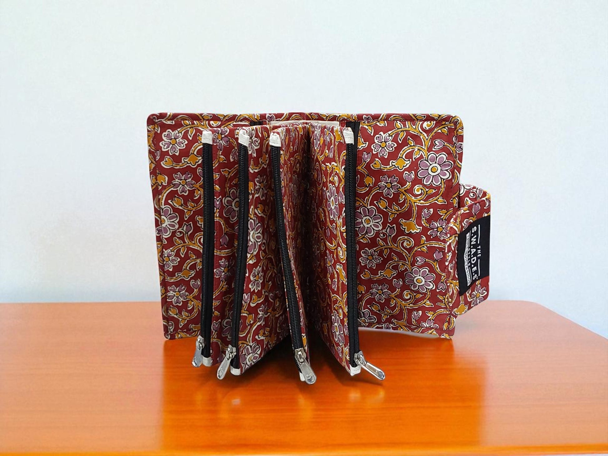 Inspired by timeless artistry and the gentle charm of floral paisleys, the Brise Florale 6-Pocket Clutch Pouch is your perfect blend of style and functionality. Crafted from soft, durable cotton with a rich maroon and red hand-block print, it offers six thoughtfully designed compartments to keep your essentials neatly organised.